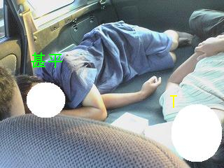 ↑車中泊が辛かったのかTの字はこん
